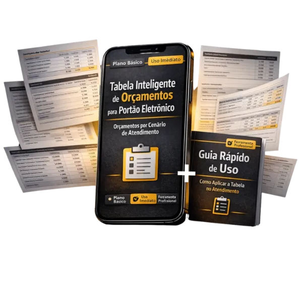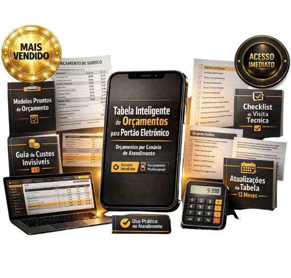 Tabela inteligente que calcula automaticamente quanto você deve cobrar em serviços de portão eletrônico, considerando custos, tempo, deslocamento e margem de lucro.